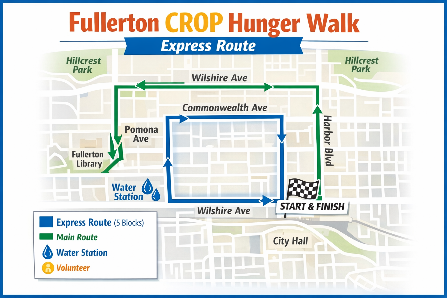 We will meet at the Fullerton Downtown Plaza to begin the walk.