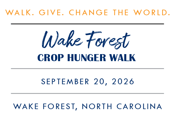 Join us for the Annual Wake Forest CROP Hunger Walk on Sunday, September 20 at the Wake Forest Birthplace Museum (414 N. Main Street, Wake Forest, NC 27587).